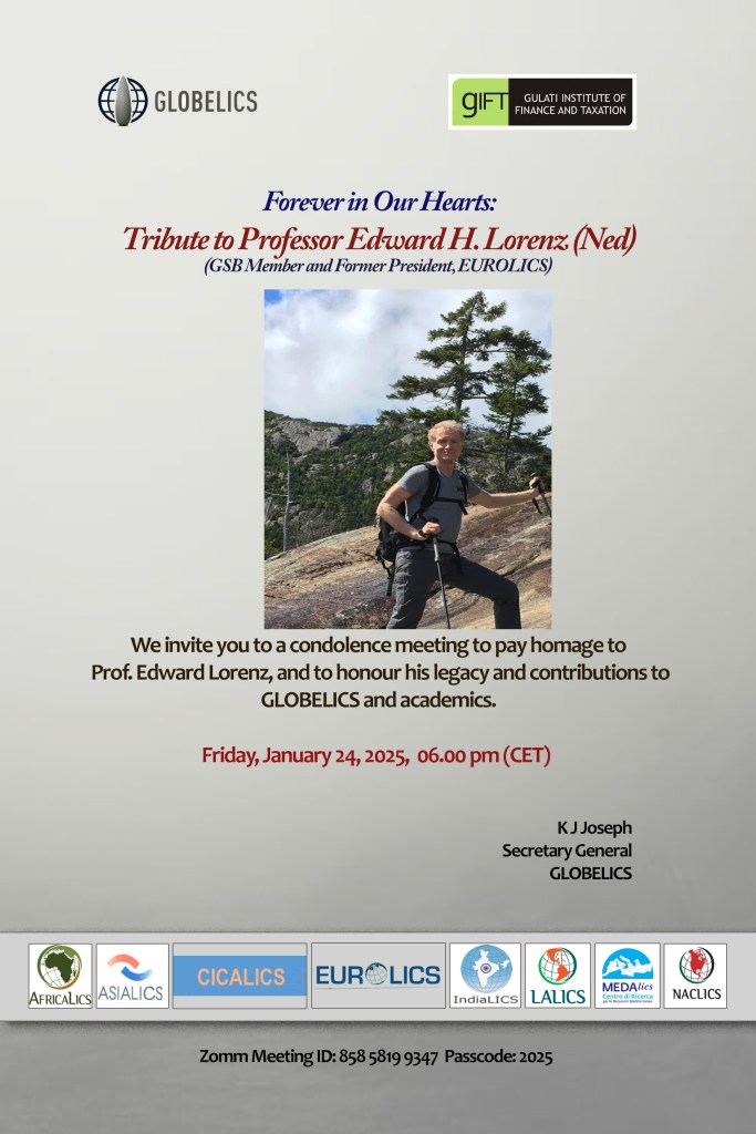 It is with deep sadness that we inform you of the passing of Professor Edward Lorenz, a distinguished academic and a valued member of the Globelics Scientific Board. Professor Lorenz, in his various capacities, made significant contributions to our community, leaving behind an enduring legacy in academia and beyond.