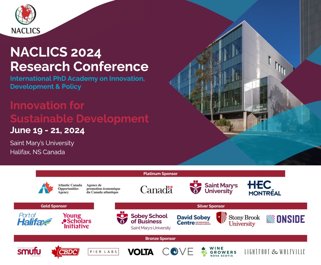 The conference is co-organized by The North America and Caribbean Chapter of Globelics (NACLICS, www.naclics.org), the Sobey School of Business at Saint Mary’s University, HEC Montréal, Stony Brook University, and the Centre for Democracy and Technology.